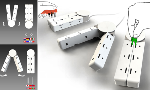 蝴蝶萬用插座延長線,是一個適合三種類型的插頭,它適合於 110伏特,220伏特,240伏特。透過用3維旋轉成為 3種類型的不同插座。兩邊的部件旋轉後透過磁鐵貼在一起,使得其表面可以透過接合而產生插孔, ''蝴蝶''不僅為旅客設計,也是為全球製造商而產生。同樣的產品,能夠滿足不同的使用者和客戶。這將降低生產成本、減少生產原料的使用,並且能夠滿足旅客旅行的問題。 |